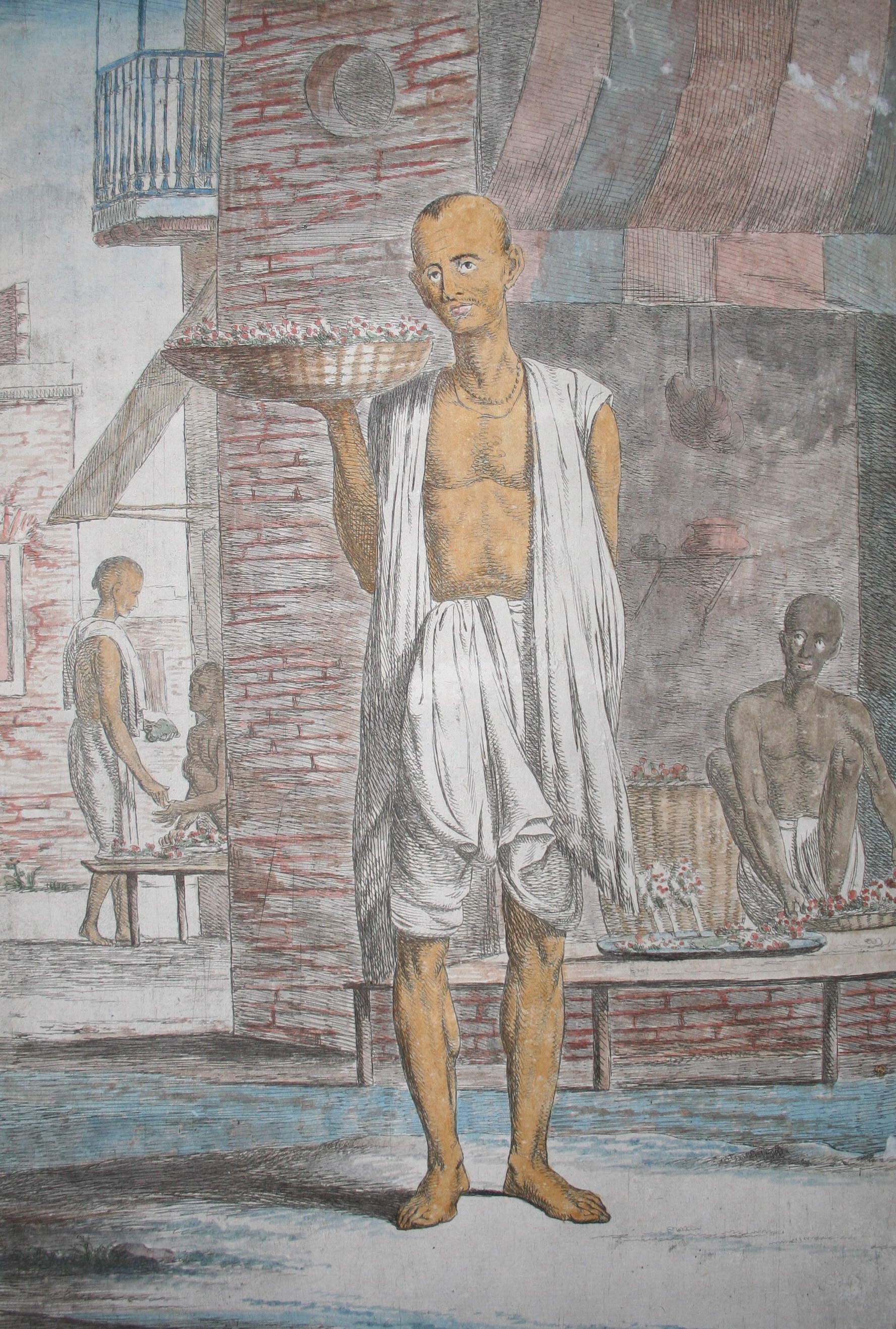 Image of a Mauly. Taken from a collection of two hundred and fifty coloured etchings descriptive of the manners, customs, character, dress, and religious ceremonies of the Hindoos by Balthazar Solvyns. The original copy of this image can be found at the Roderic Bowen Library and Archives, University of Wales Lampeter.