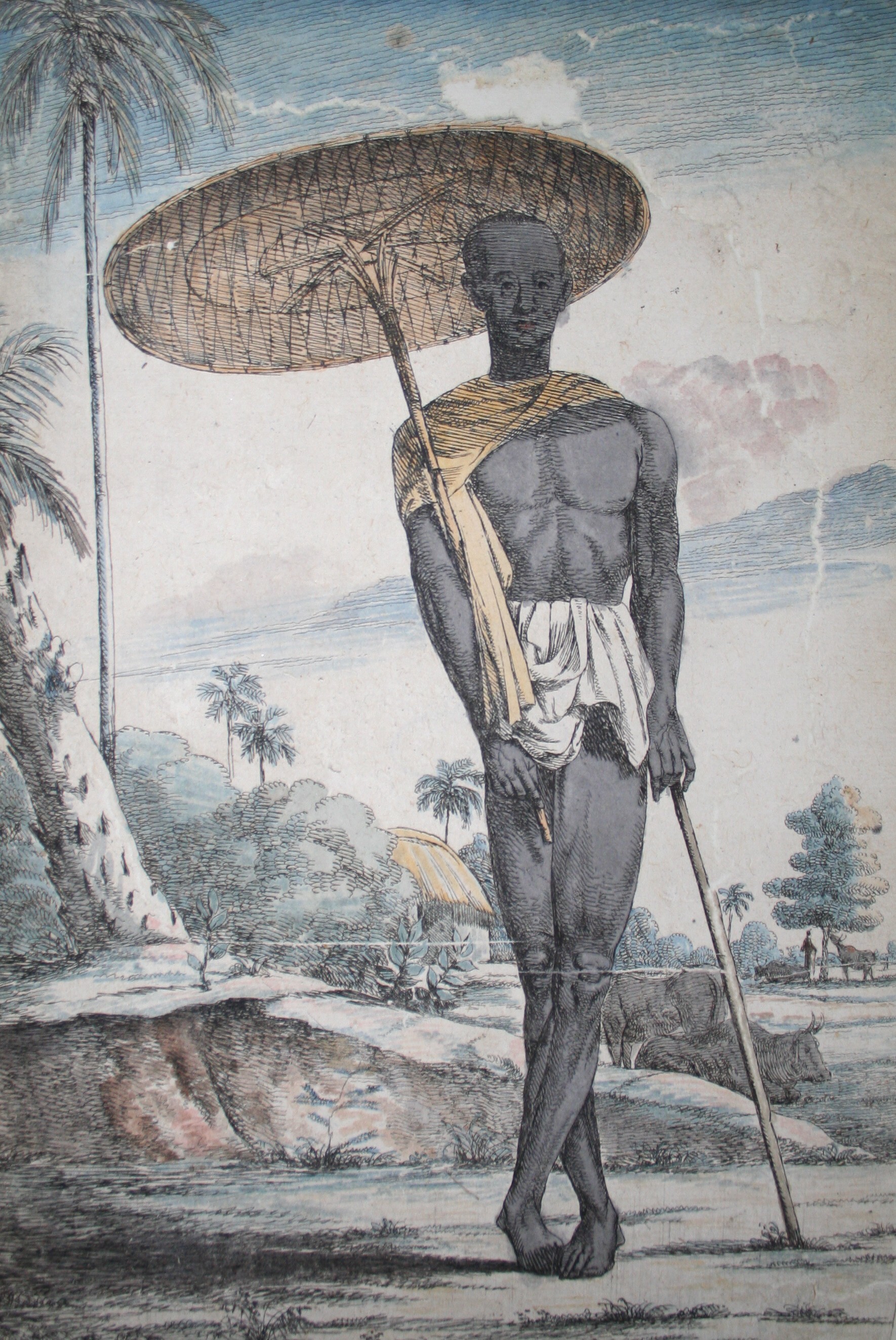 Image of a Gwalla. Taken from a collection of two hundred and fifty coloured etchings descriptive of the manners, customs, character, dress, and religious ceremonies of the Hindoos by Balthazar Solvyns. The original copy of this image can be found at the Roderic Bowen Library and Archives, University of Wales Lampeter.