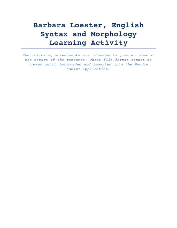 Level 4 English Language course on Syntax and Morphology. This forms part of a series of interactive learning activities that complement lecture and seminar delivery methods and work as continuous assessment. To see the nature of this resource please preview the word document. Shared with the World by Dr Matthew Sauvage |