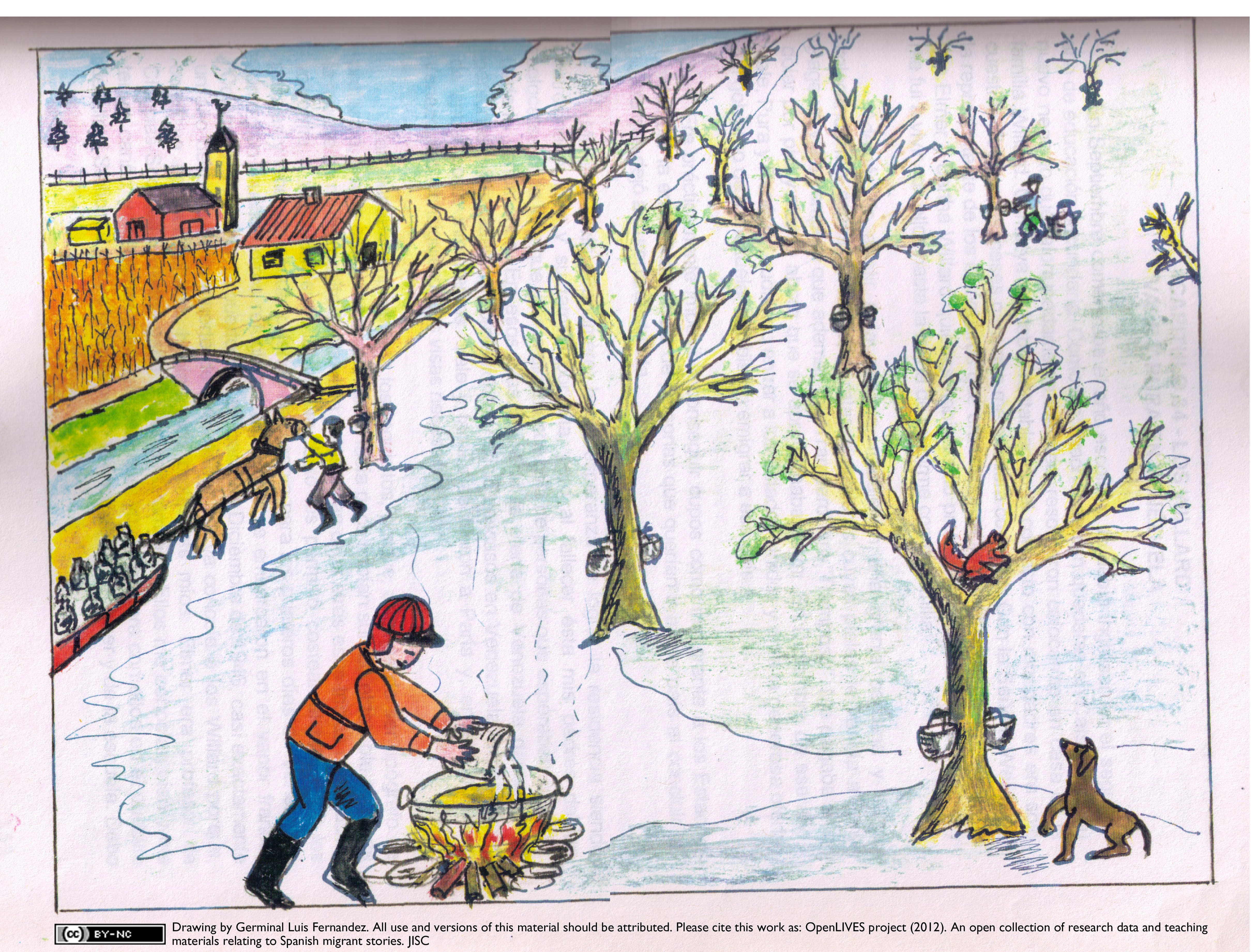 Drawing made by Germinal Luis Fernandez to illustrate his life story. This work is licensed under the Creative Commons Attribution Non Commercial License http://creativecommons.org/licenses/by-nc/3.0/. This means that you may download and adapt the work for non-commercial purposes but you must credit the original author. All use and versions of this material should be attributed. Please cite this work as: OpenLIVES project (2012). An open collection of research data and teaching materials relating to Spanish migrant stories. JISC