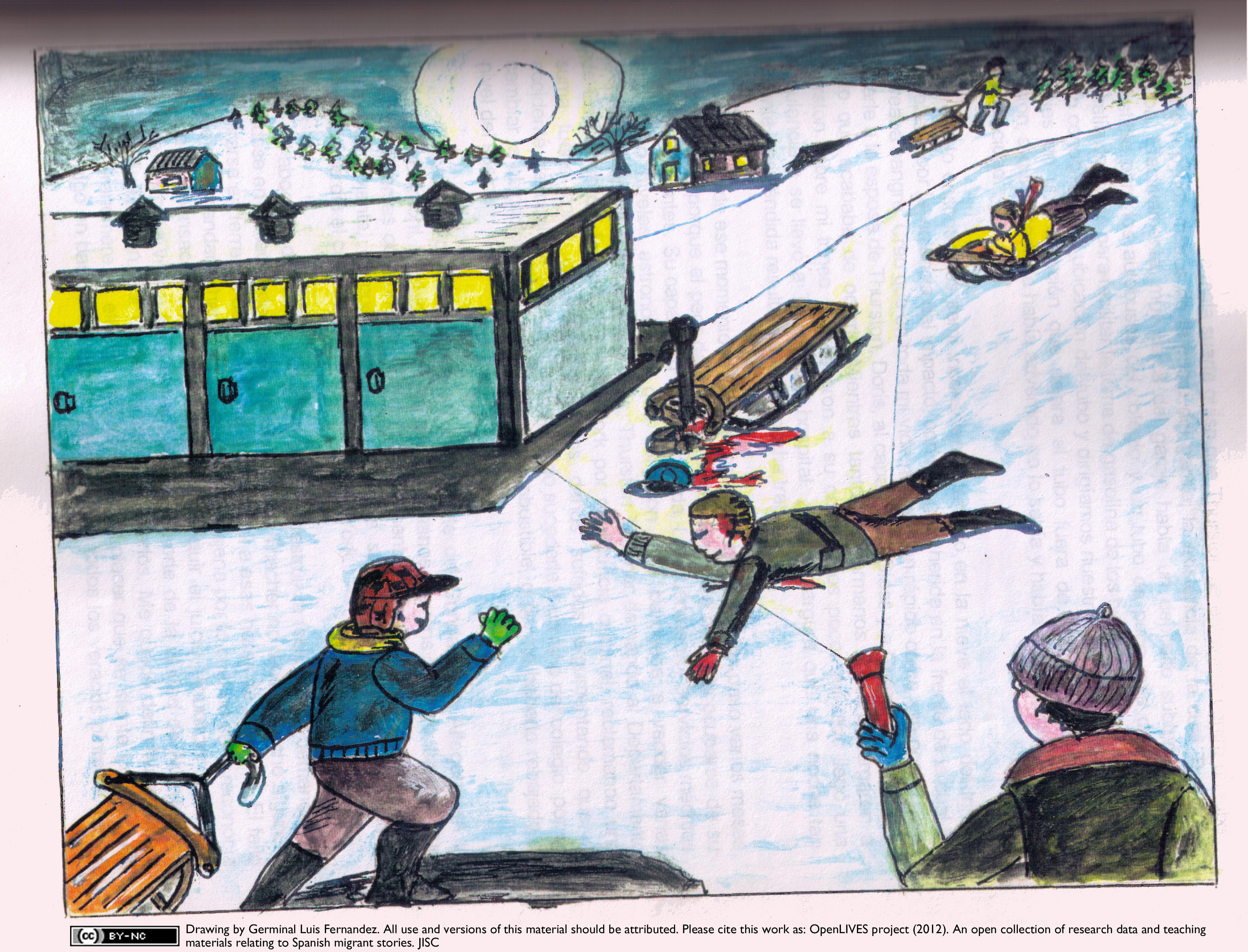 Drawing made by Germinal Luis Fernandez to illustrate his life story. This work is licensed under the Creative Commons Attribution Non Commercial License http://creativecommons.org/licenses/by-nc/3.0/. This means that you may download and adapt the work for non-commercial purposes but you must credit the original author. All use and versions of this material should be attributed. Please cite this work as: OpenLIVES project (2012). An open collection of research data and teaching materials relating to Spanish migrant stories. JISC