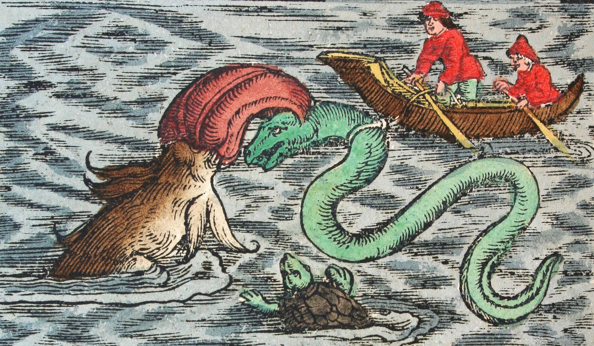 Images of imaginary sea monsters drawn by the Swiss naturalist and bibliographer Konrad Gesner (1575). The original copy of these images can be found at the Roderic Bowen Library and Archives, University of Wales Lampeter.