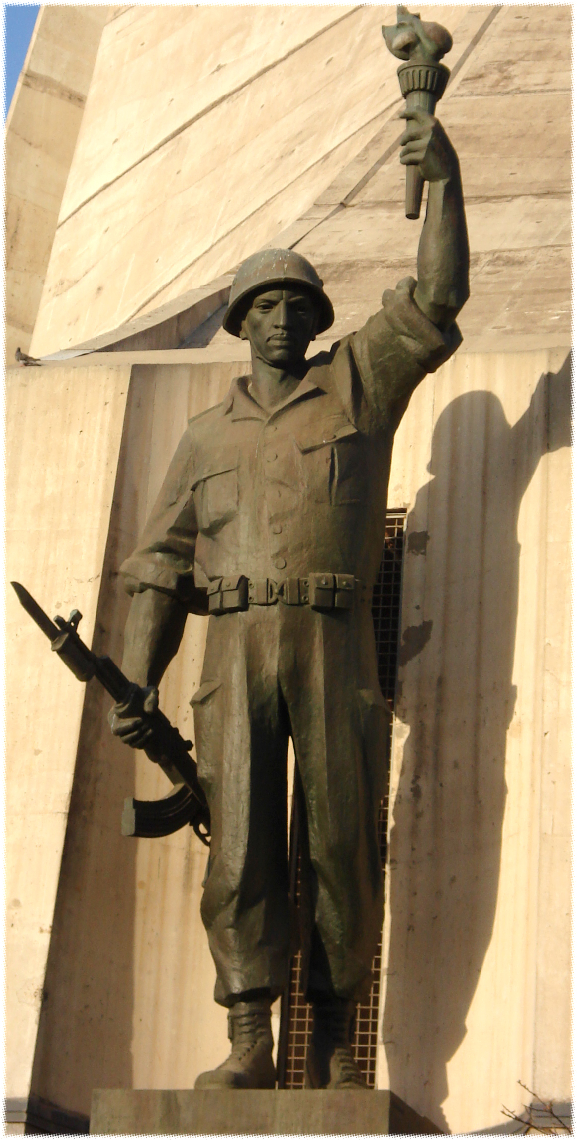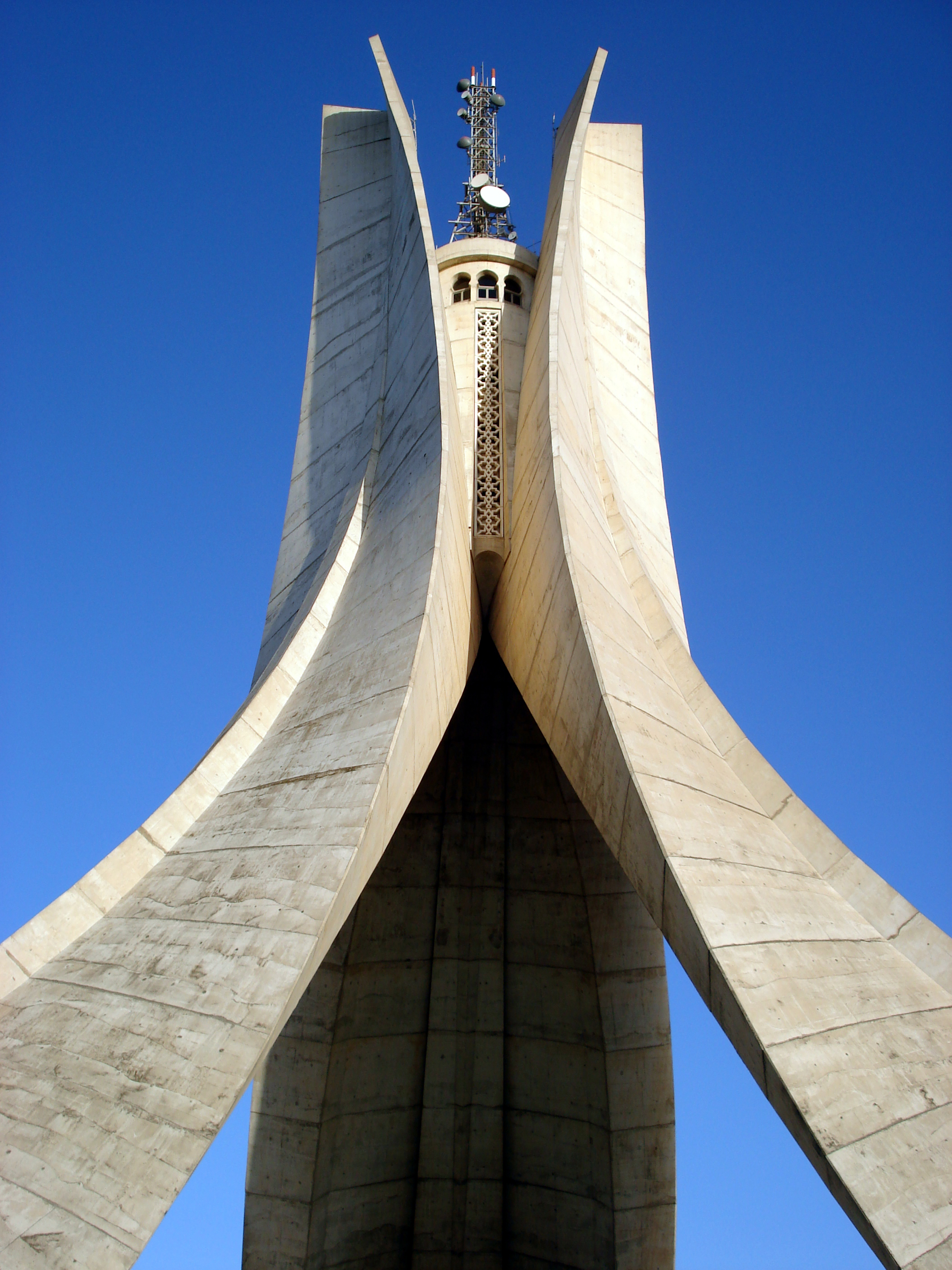 Dominating the Algiers skyline is Maqam el-chahid (monument to the martyr), inaugurated in 1982 (under Chadli Bendjedid's presidency) to commemorate the twentieth anniversary of independence. Three enormous palmettes stretch 97 metres high, at the foot of each, three statutes are said to symbolise the three pillars of the proclaimed revolution, cultural, industrial and agrarian - although they are all armed men.
