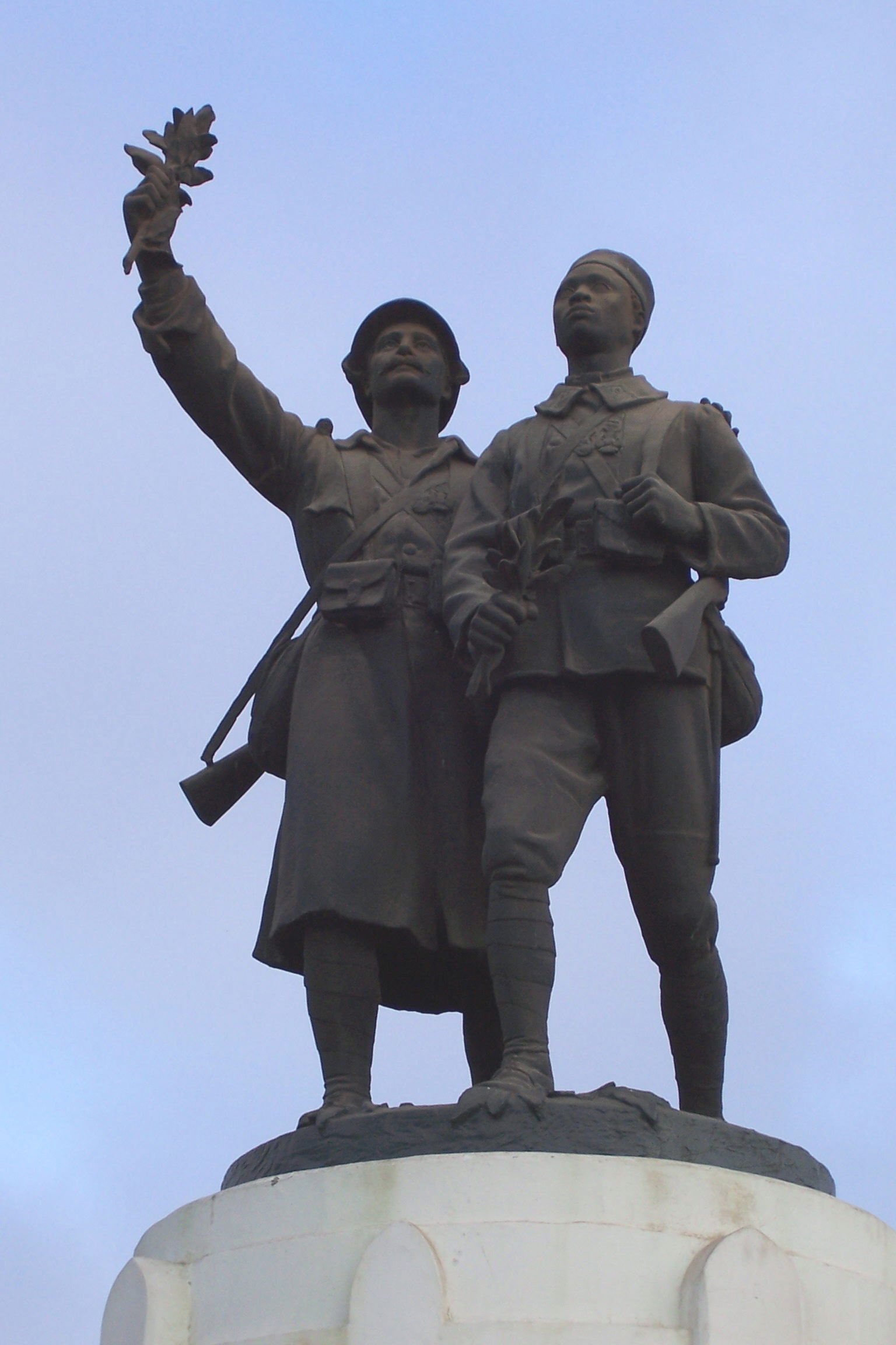 This resource includes a reproduction of a 1923 monument commemmorating the Tirailleurs Sénégalais who fought for France during the First World War. The original of this monument was erected in Reims and destroyed by the Germans in 1940. An exact copy used to be displayed in Bamako (Mali) but is not currently on public display. This small-scale reproduction may be viewed at the Musée des Forces Armées in Dakar (Senegal)